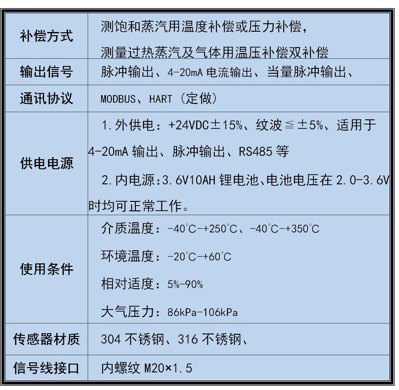 1. 涡街流量计具体适合工况参数见涡街流量计说明书